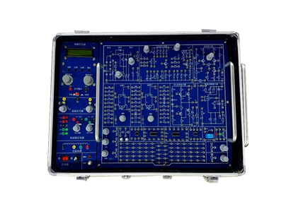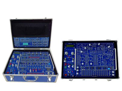 實驗箱采用鋁合金材料,箱蓋上絲印產品型號和名稱,實驗箱面板采用2mm厚線路板噴漆絲印而成,箱體為上下開合結構,數電模電二合一,雙面均為電路,數電模電實驗板為可拆卸設計,通過不銹鋼手柄翻轉即可完成實驗面板切換,實驗用的元器件均安裝在正面,使學生對器件有直觀的認識;面板上實驗設計合理,便于接線。面板上還預留了可擴展接口。
